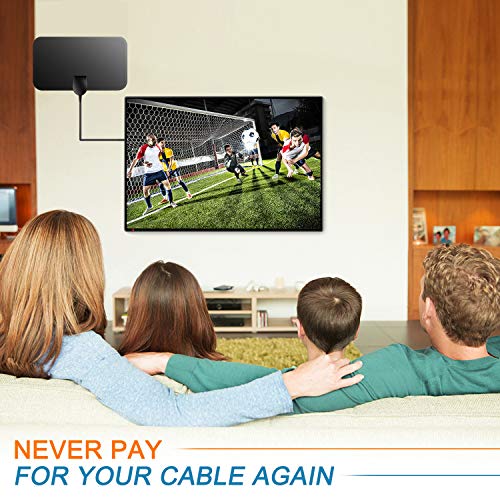 Easing Indoor TV Aerial, 50 Miles Digital HDTV Antenna Freeview 4K 1080P HD FM VHF UHF Window Aerial for Local Channels Support ALL Television-13ft Coax Cable, Black