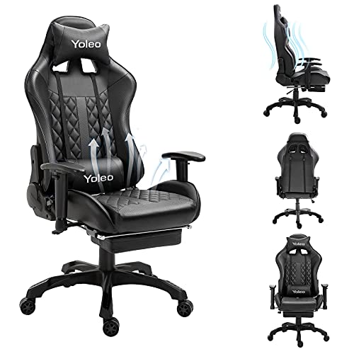 Dripex Gaming Chair with Footrest, Racing Gaming Chair for Adults, Computer Desk Chair, Adjustable Lumbar Support & Headrest & 2D Armrest, Ergonomic Reclining Swivel Chair 150kg Weight Capacity, Black