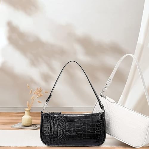 Aucuu Women's Shoulder 90s Classic Clutch Retro Crocodile Pattern Underarm Vintage Mini Bow Zipper Closure Gift Christmas, Birthday Anniversary Handbag, White, 28*14*4 cm