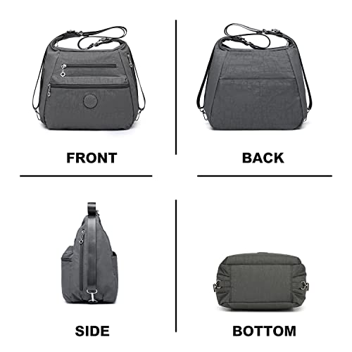Kono Women Fashion Multiway Use Bags Adjustable Shoulder Strap Durable Waterproof Messenger Bag Handbags Tote Bag Unisex Double Zipper Hobo bag, Grey
