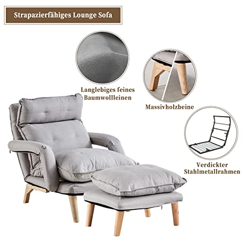 TUKAILAi Modern Relaxing Chair with Footstool, Reclining Function, TV Chair with Stool, Wing Chair, Stressless Armchair, Lounge Chair with Footrest, Upholstered Chair for Relaxed, Reading Grey