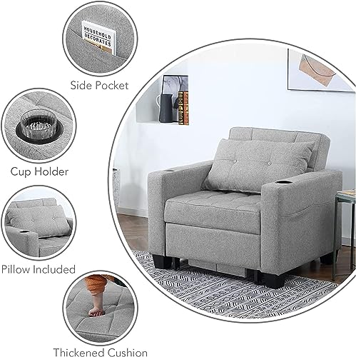 DURASPACE Light Grey Linen Modern Recliner Adjustable Backrest Armchair Sleeper Chair Bed With USB Port, Cup Holder, Side Pockets, Bottom Storage Basket For Home Living Room Item Sku: