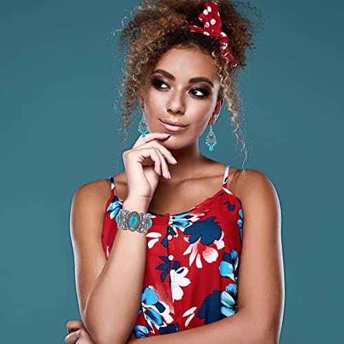 Yolev Bohemian Turquoise Jewelry Set Bohemian Vintage Dangle Earrings Bracelet Necklace Western Boho Jewelry Set Ethnic Style for Women, Silver